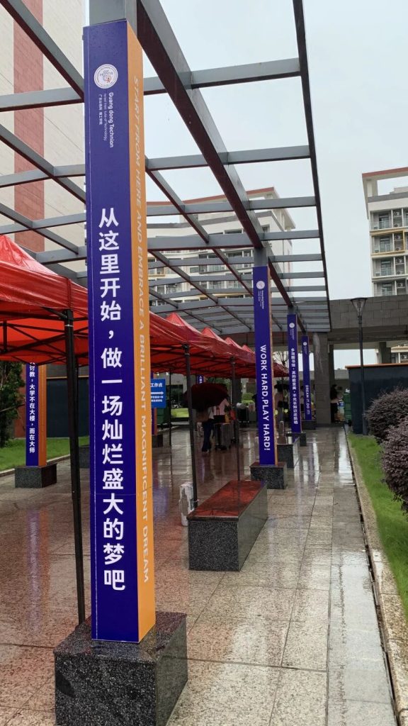 8月3日新生报到当日,我们走进校园,第一次深入地感知和了解校园环境。校园整洁美丽,宿舍宽敞明亮,丰富的体育设施更是让喜欢运动的孩子兴奋不已;而“脸皮厚一点,机会也会多一点”“尽兴玩,勇敢创!大学,你的主场!”等新奇有趣的迎新标语,则让我们直观地感受到广以“Dream it, Do it”的精神;食堂里,外籍教师跟学生一起就餐;签到处,招生老师与家长热情交流……孩子的广以生活,就在这样和谐、热烈而美好的报到日里如约开启了。